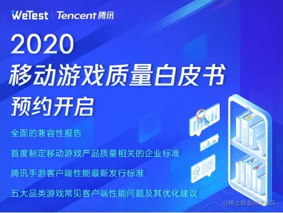 腾讯质量开放平台WeTest首度联合泰尔终端实验室联合发布的《2020移动游戏质量白皮书》现已开放预约,点击前往wetest.qq.com/white-paper… 抢先预约。