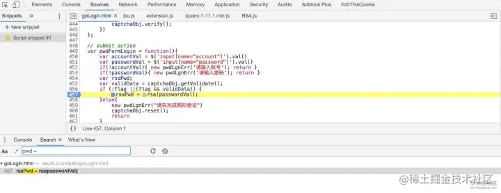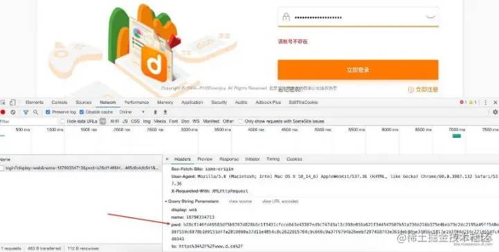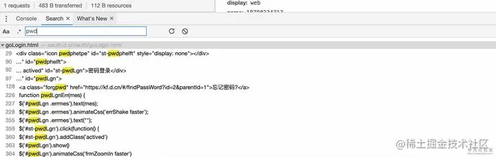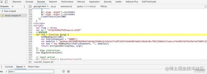 通过输入账号密码抓包查看加密字段,很明显,只有密码被加密了,接下来我们全局搜索 pwd