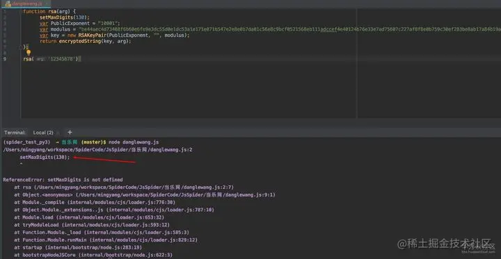 很明显的看到,就是一个 rsa 加密,其中 arg 是我们输入的密码,接下来我们使用 先把这一段代码扣下来(进行一些修改,使用node进行调试输出,如下