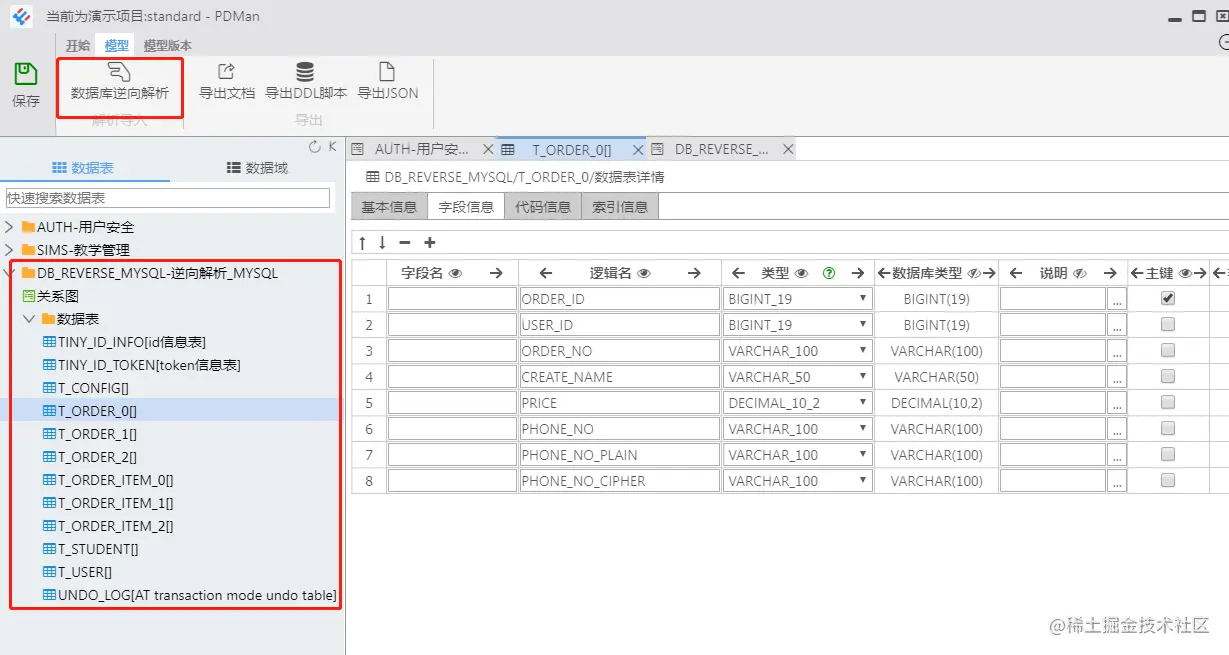 前边我们已经配置了数据库信息,这里直接将已有数据库中的数据表,逆向生成表结构,和数据表间的关系图。