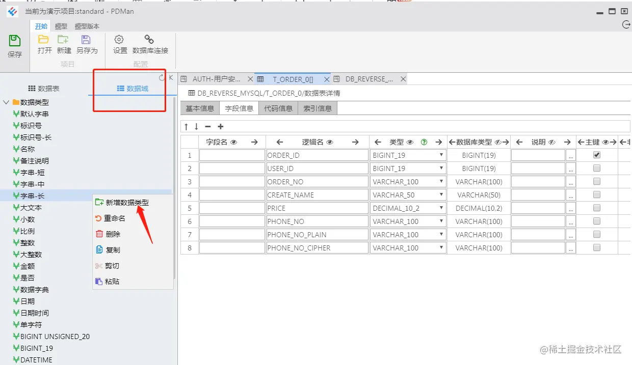 还可以自定义数据类型,比如:字符型可以自定义 varchar(10)、varchar(20)、varchar(30),建字段时直接选择对应数据类型即可,一劳永逸。
