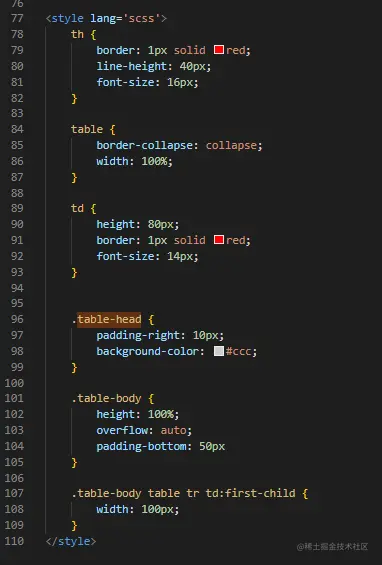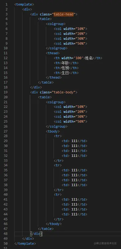 原生表格table固定表头 大帅_Jade 2020-12-30 1,076 阅读1分钟 1.html部分 2.style部分 3.colgroup 是为了表头和表格部分宽度保持一致,table-head中padding-right是为了留出滚动条的位置