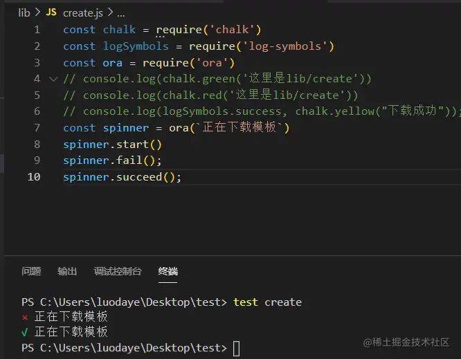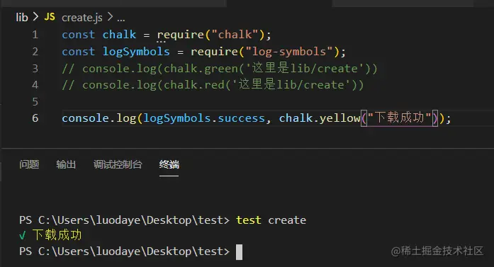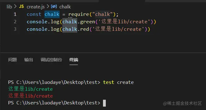 终端输入test create查看效果: