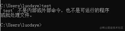 这时我们cmd输入test命令,你会发现报错了: