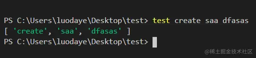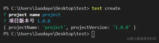 终端执行test create,上面的代码打印了执行后的拿到的参数如下图所示:
