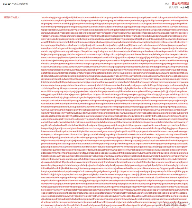 然后LeetCode的测试用例字符串也是真的长(只截取了部分下面还可以翻页),所以在n^2的情况下超时。