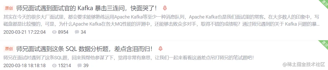 其中几篇关于面试的博客收到了130+赞,15000+阅读量,第一次做“标题党”被好友吐糟 .. 人家敖丙都是写“吊打面试官”,到你这..好家伙,天天欸打 /(ㄒoㄒ)/~~