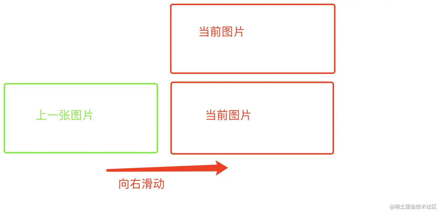 - 改变现在两张图的位置,也就是left,使第二张图的位置滑到第一张图,要有过渡效果。