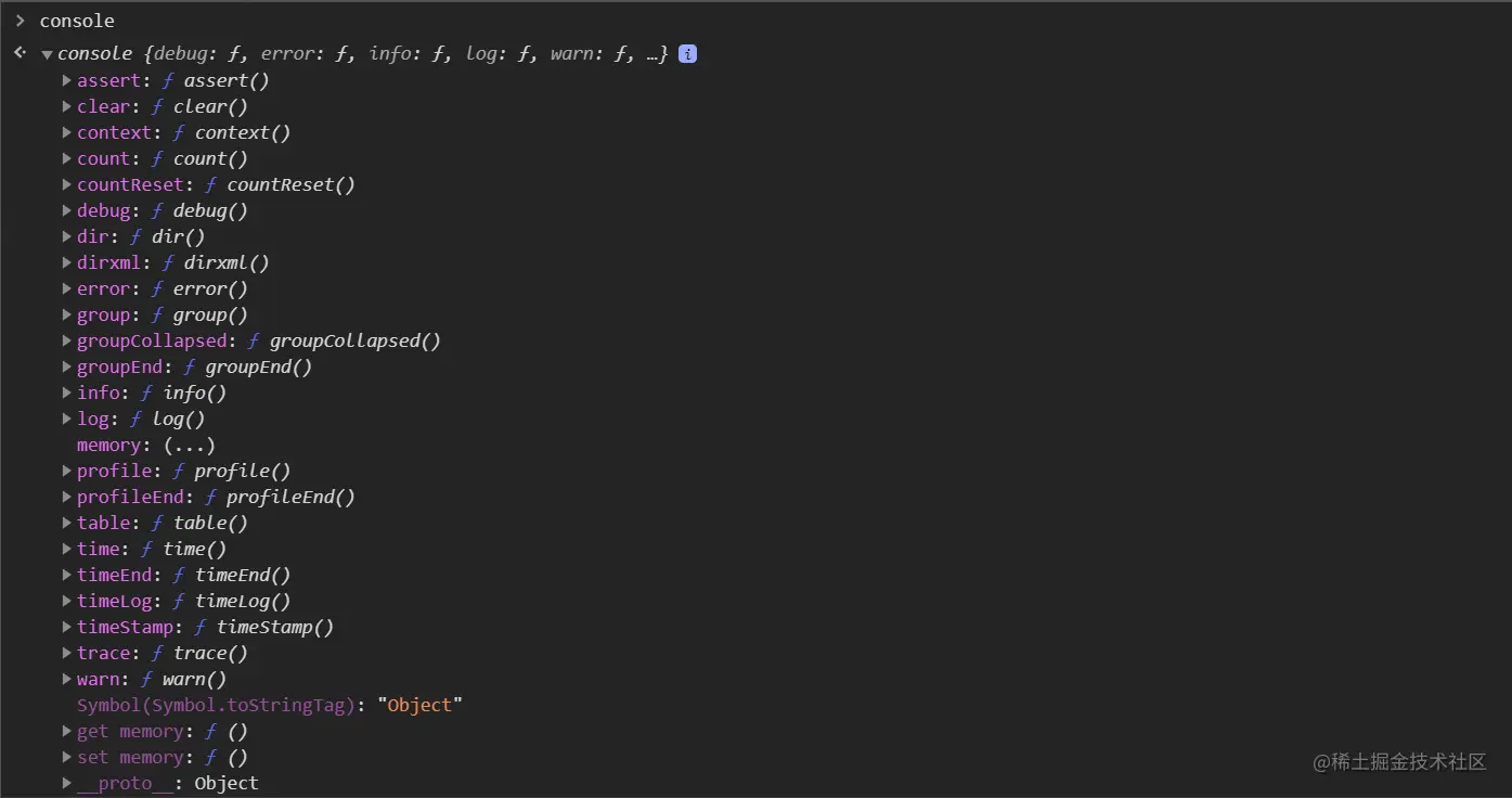 那么在正式介绍之前,我们先看一下console对象里面都有那些方法。