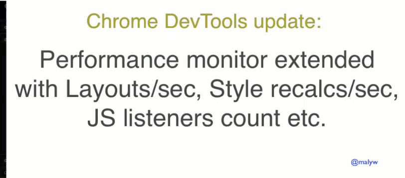如果动画以60FPS的速度运行,那么它看起来很平滑。低于60FPS意味着某些帧渲染花费的时间太长,并且动画看起来不流畅,甚至有些混乱,页面急需进行优化。FPS仪表中显示的另一件事是GPU内存使用情况,在上一个图中为512MB中的2.3MB,这意味着GPU使用率较低。