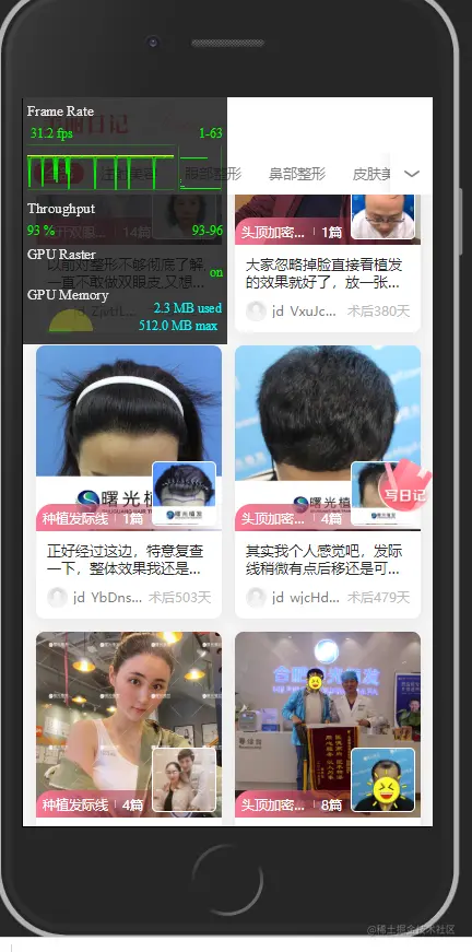 激活后,可以在页面左上角观察到一个黑色的区域,里面包含了画面帧的实时数据。有了这个工具,我们可以及时的观察到在我们操作页面的过程中直接看到什么而导致页面帧刷新频率的下降。