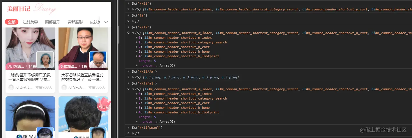 这里以我们项目中的美丽日记进行举例元素的匹配情况