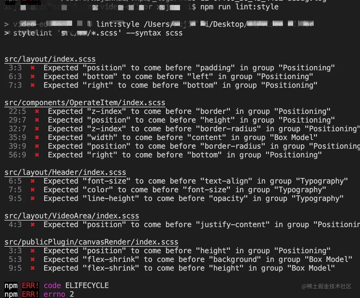 - 样式规范:包含css/less/scss等样式文件属性先后规则,命名