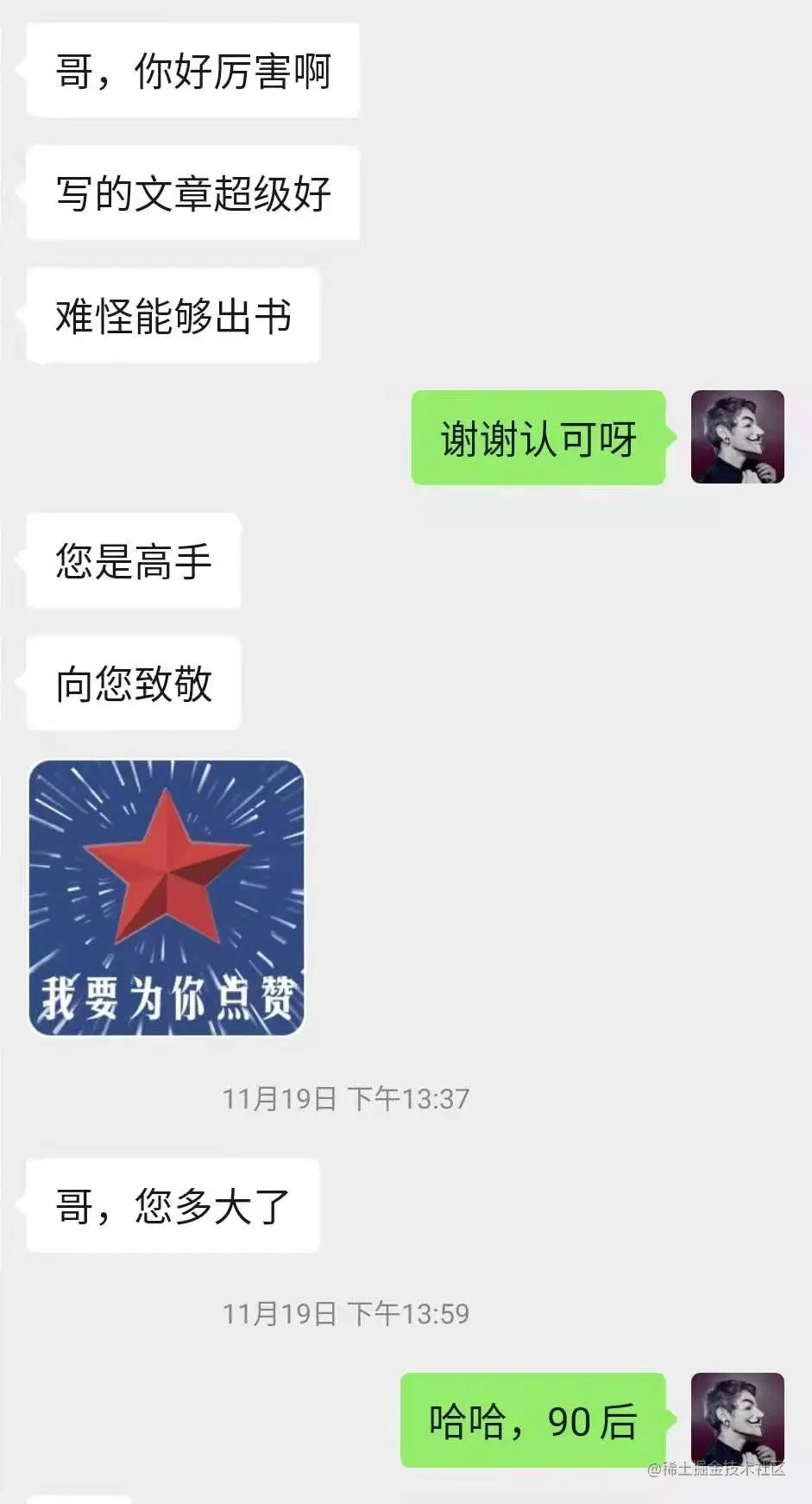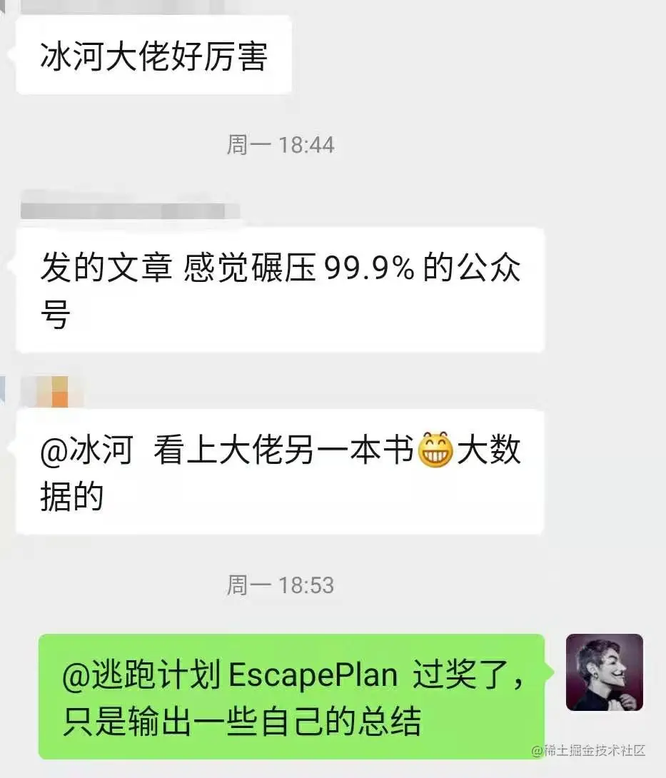 期间,公众号的文章也被很多小伙伴认可过。这种认可比出书还高兴啊,也给了我更多的动力去写好每一篇文章。这里,我就晒两张图吧。