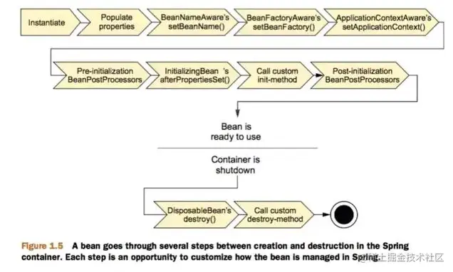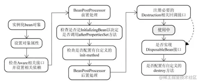 - 当要销毁 Bean 的时候,如果 Bean 实现了 DisposableBean 接口,执行 destroy() 方法。