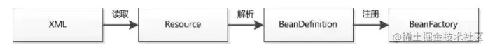 - Bean 容器找到配置文件中 Spring Bean 的定义。