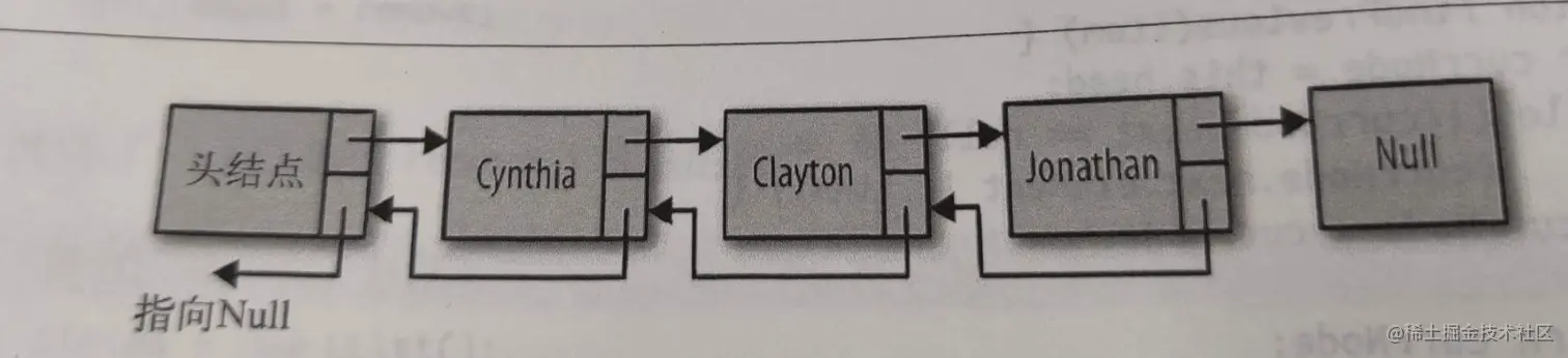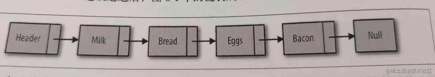数组元素靠位置进行引用,链表元素靠相互间的关系进行引用,下图是一个有头节点的链表