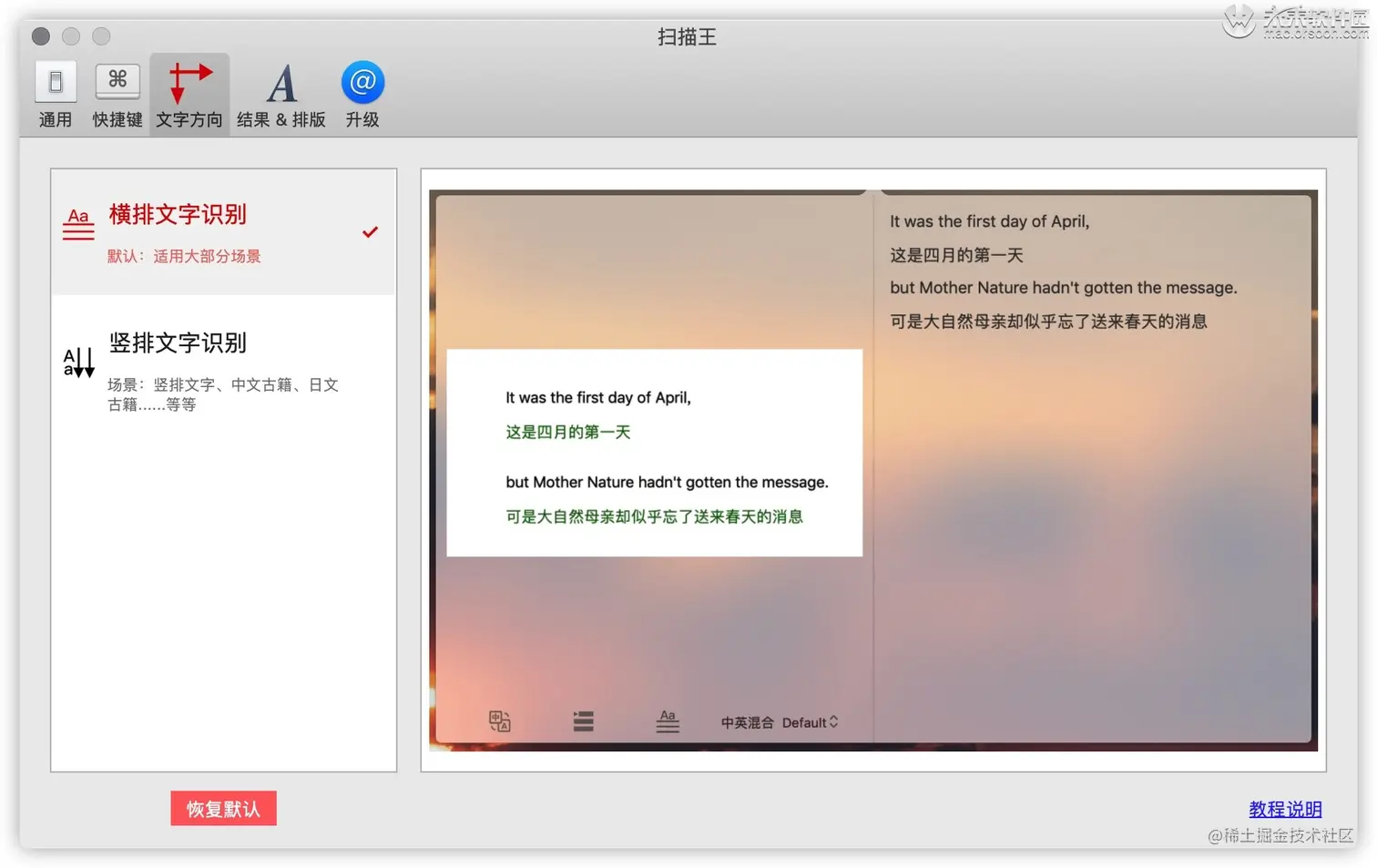 扫描王 mac中文版是mac上一款超强OCR文字识别软件,扫描王Mac版基于AI领先的深度学习算法,利用光学字符识别技术,将图片上的文字内容,直接转换为可编辑文本。目前扫描王在该类型在 App Store 受欢迎排名第一,可以说是 Mac 下最好用的 OCR 软件。
