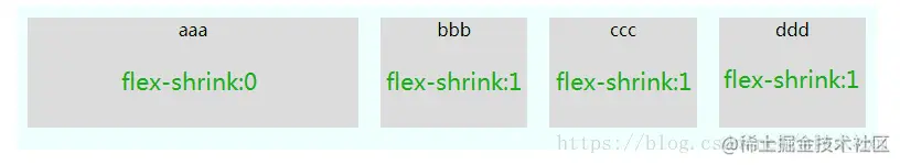 如果所有的项目 flex-shrink 属性都为1,则空间不够时,都将等比例缩小。如果一个项目的 flex-shrink 属性为0,其他项目都为1,则空间不足时,前者不缩小。