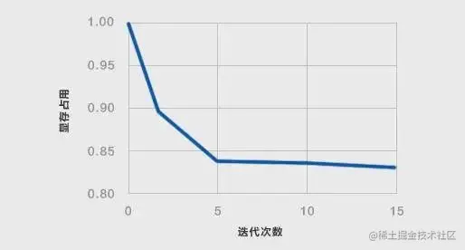通过选定同一模型、给定batch size,可以更好地观察遗传算法优化显存占用的情况。如图3所示,随着迭代次数的增加,遗传算法逐渐收敛显存占用,并在第5次迭代之后达到一个较稳定的状态。