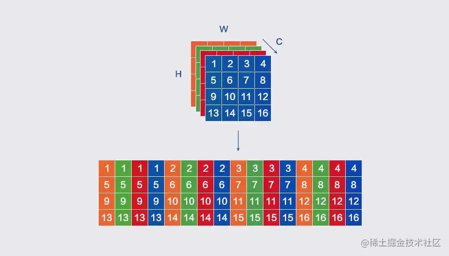 NCHWX在NCHW的基础上转换而来,其原理可参考下图。