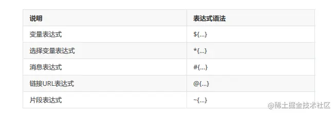 Thymeleaf模板引擎提供了多种标准表达式语法,在正式学习之前,先通过一张表来展示其主要语法 及说明