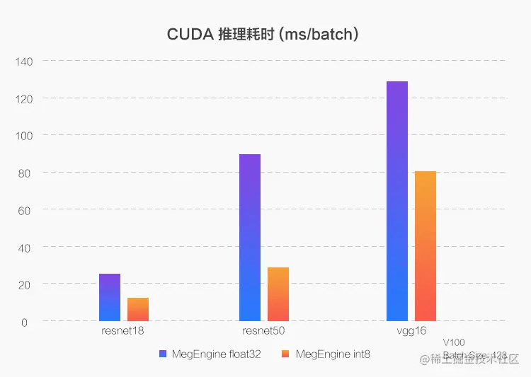 CUDA 平台是指 NVIDIA 旗下 GPU 平台,由于提供 CUDNN 和 Toolkit 系列接口以及 TensorRT 专用推理库,大部分算子可以使用官方优化,而 MegEngine 则在此基础上进行了更多细节的优化,比如如何更好地利用 GPU 的TensorCore 进行加速,不同型号之间一些差异的处理等,最终效果根据不同模型也有非常明显的推理加速。