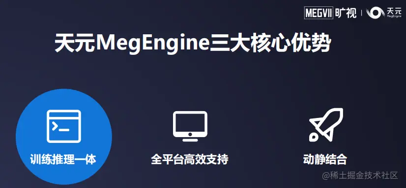 从开源到现在经过半年的技术迭代,天元拥有了三大核心优势:训练推理一体、全平台高效支持、动静结合的训练能力。