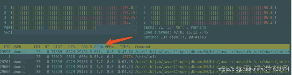 Jmeter:(CPU:681%)