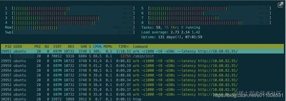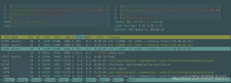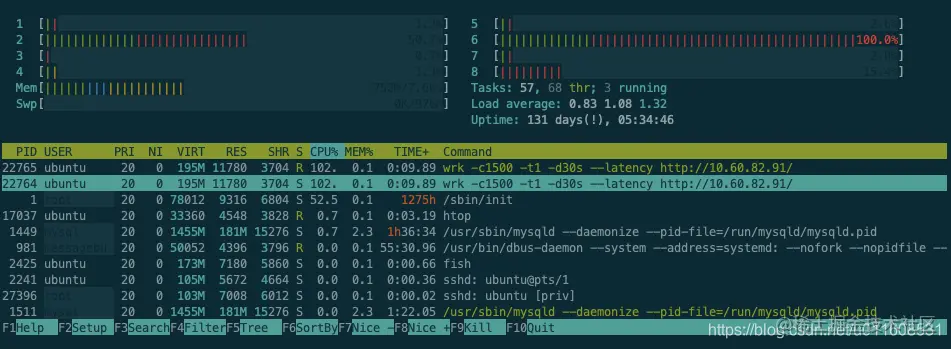 Wrk: CPU = 40% * 8 = 320%