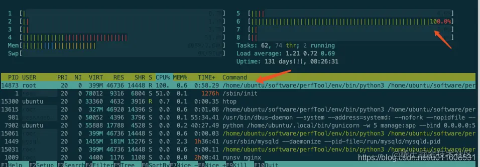 locust:(CPU:800%, CPU达到瓶颈)