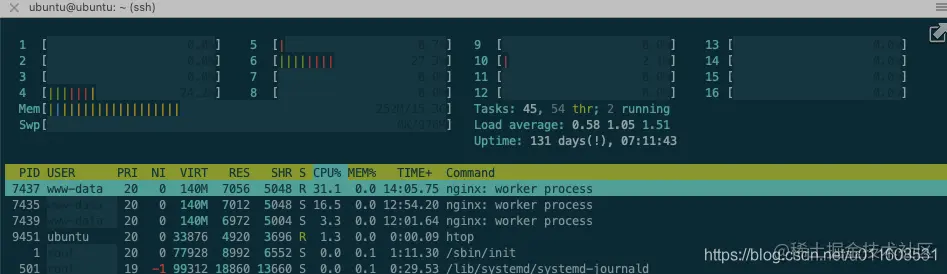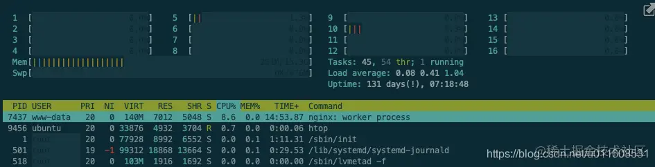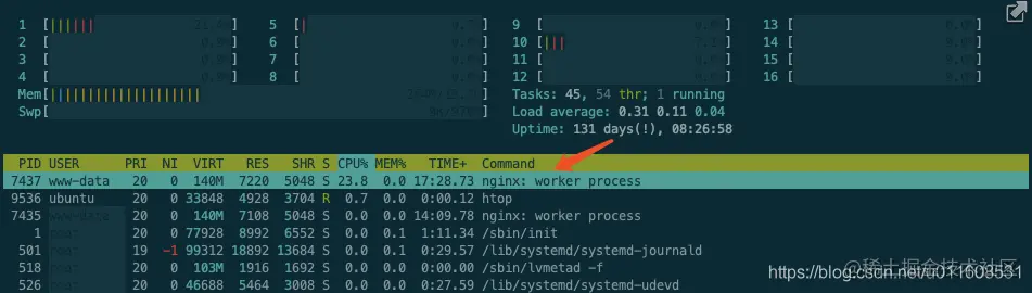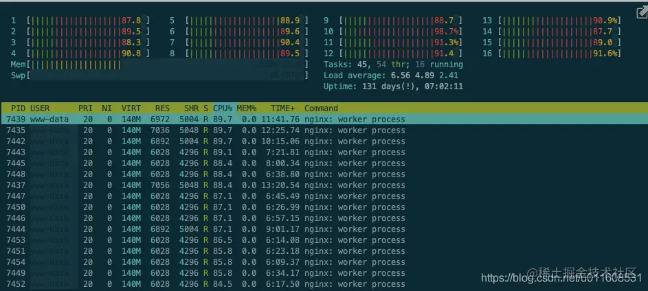 Nginx: 86% * 16 = 1376% , 达到CPU瓶颈
