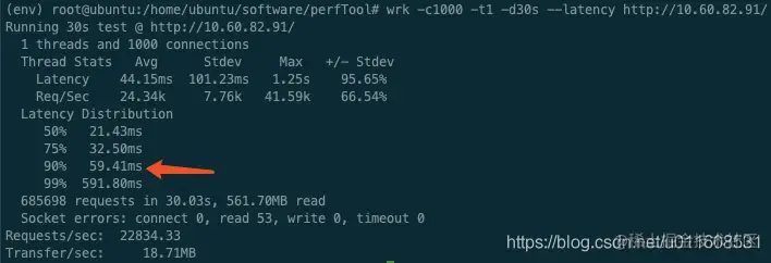 Running 30s test @ http://10.60.82.91/ (压测时间30s)