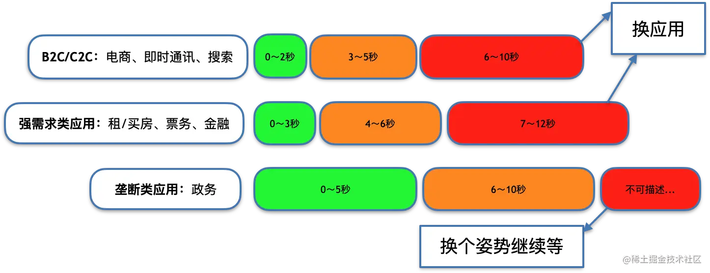 对于大部分商业公司的ToC产品,性能关乎产品命运和增长。如下图所示,虽然现在阿里京东垄断不太容易更换应用,但是遇到性能很差的时候,心里还是忍不住问候几句。