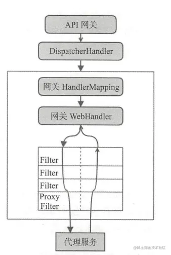 - 随后到达网关的Web处理器,该WebHandler代理了一系列网关过滤器和全局过滤器的实例,如对请求或者响应的头部进行处理(增加或者移除某个头部)。