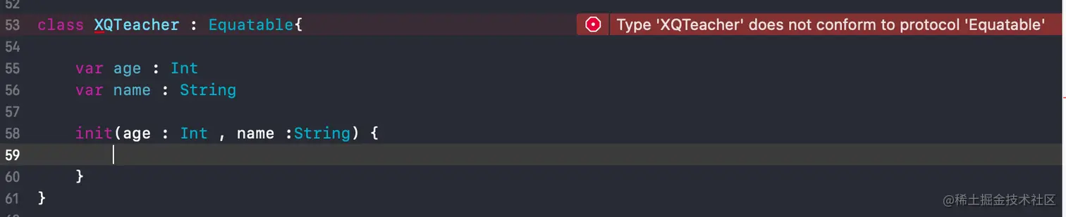 var t1 = XQTeacher.init(age: 19, name: "xq")