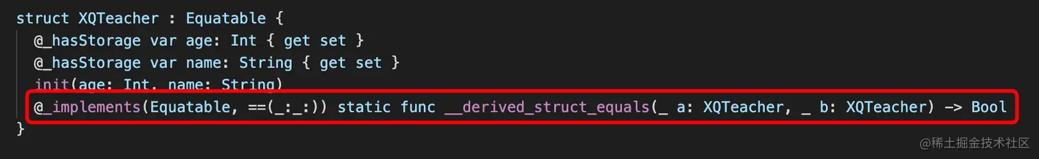 static func == (lhs: XQTeacher, rhs: XQTeacher) -> Bool {