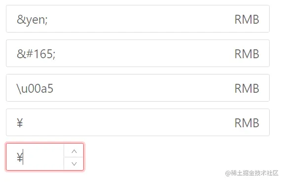 这时灵机一动使用 js 的 unicode 码试试, 查了下对应的编码是 \u00a5
