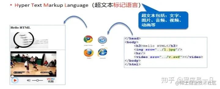我们在用工具,或者说文件,这类记事本的这种编辑器去把HTML代码去进行编写,编写了之后通过浏览的渲染跟处理,然后就编程了我们熟知的这一种网页。