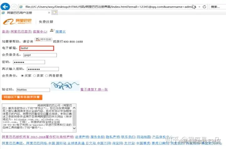 那么在这个里面的话呢,首先给大家来看一下我们要实现的HTML,阿里巴巴注册界面长什么样子