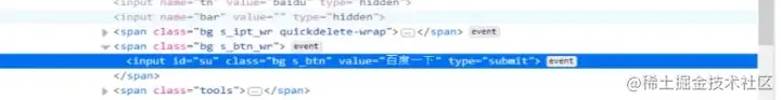 里面包含了很多的内容,比如说我想知道百度这个按钮,它的代码是怎么写的