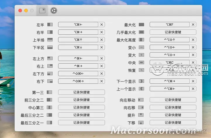 Rectangle 提供了多个分屏操作相关的快捷键,看起来很多,但没必要全部记住,只需要记住常用的即可。