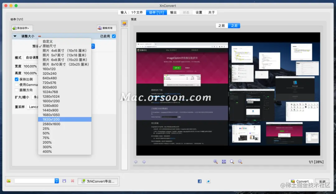 XnConvert,是一个免费的图片批量处理工具,可用来批量转化图片格式、压缩图片和添加滤镜等,支持 Windows、macOS 和 Linux 系统。
