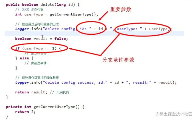 给大家一个直观的例子。下面是controller的一个删除数据的接口,我来之前大家写的这个样子的(其实一开始比这个还差很多),功能很简单,输入一个对象id执行删除返回是否删除成功。大家有没有觉得有什么问题?