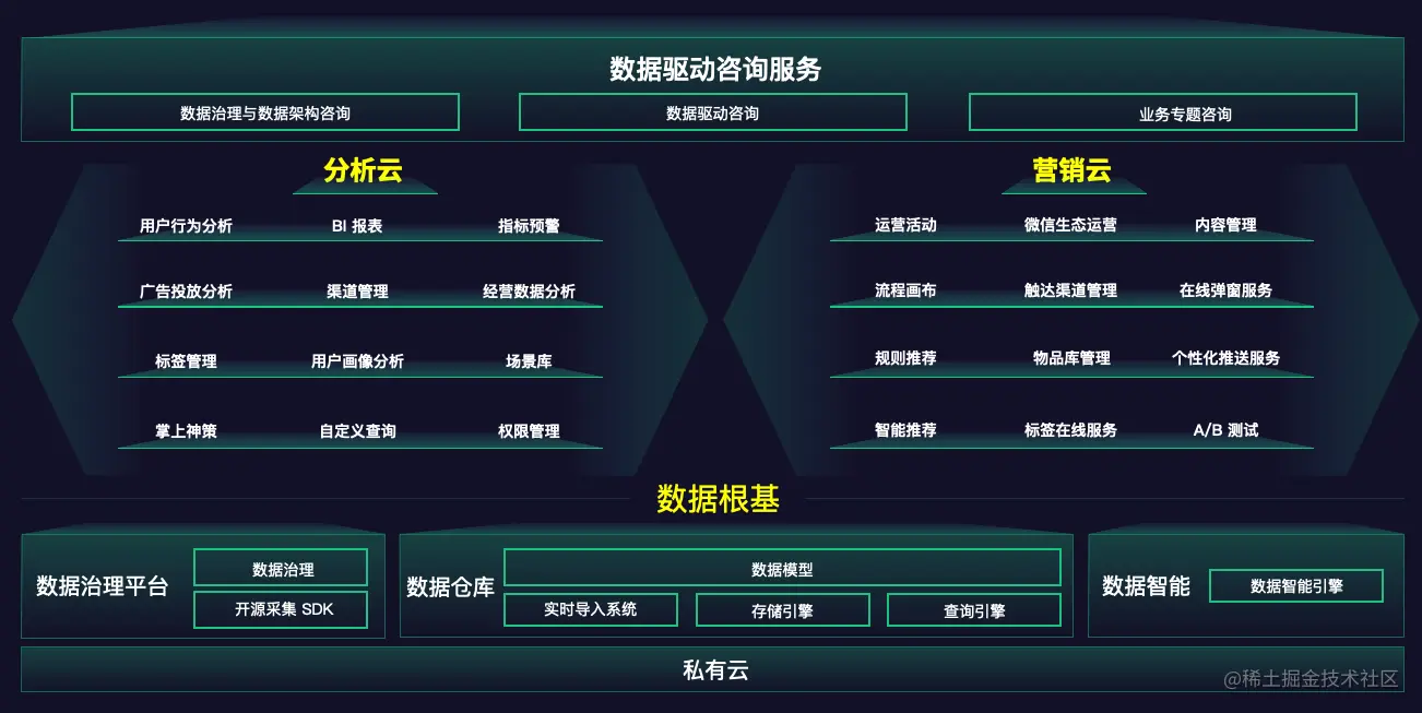 神策数据是中国用户行为分析行业技术与应用标准定义者,不止提供用户行为数据分析工具,更提供全新的数字化营销闭环解决方案——“分析云 + 营销云 + 数据根基平台”的强大产品组合。