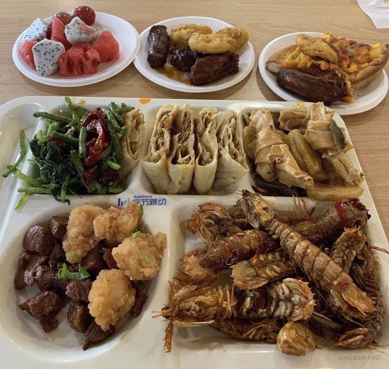 晒工牌的见多了,晒奖金的也不少,全员晒伙食,晒成园区游园必打卡项目的,恐怕也是只此一家了。免费三餐,不限量零食,每日下午茶,好不好吃么见仁见智,想饿着自己真就有难度。