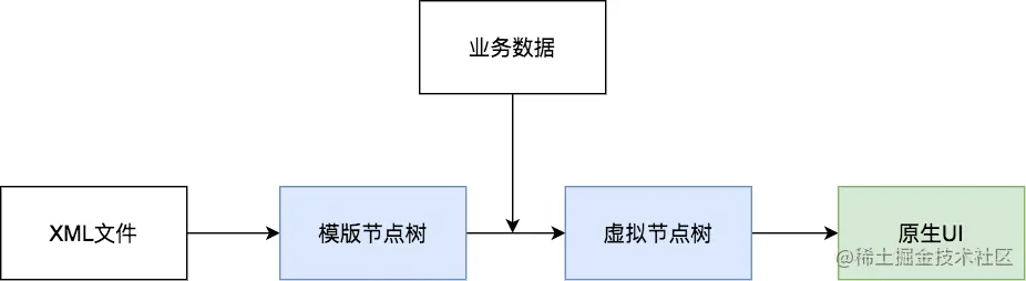 从XML文件到页面UI布局树从原理上是一个映射过程,考虑到布局性能和复用的原因,这样的映射不是直接完成的,需要中介数据结构:虚拟节点树。虚拟结点树。它应包含树形结构的层级信息、Flex属性信息、数据解析处理后的内容信息以及基本的渲染信息。