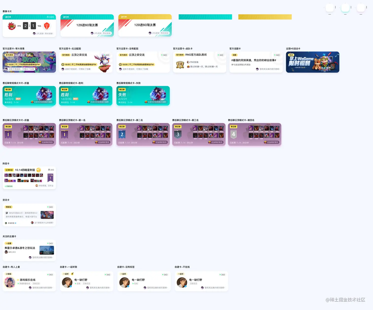大概是在半年前,app上线了房间卡片样式的首页,初版设计了上图的卡片集合,上线运营过程中,调整和新增卡片样式的需求从未间断,开发只能跟着版本迭代作出调整,哪怕只是微小的改动也要按部就班地走开发、测试、灰度等步骤,整个流程下来少则大半个月,多则1个多月。