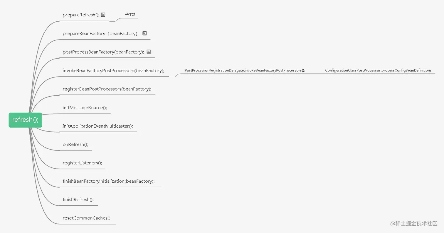- 发布ContextRefreshedEvent事件告知对应的ApplicationListener进行响应的操作