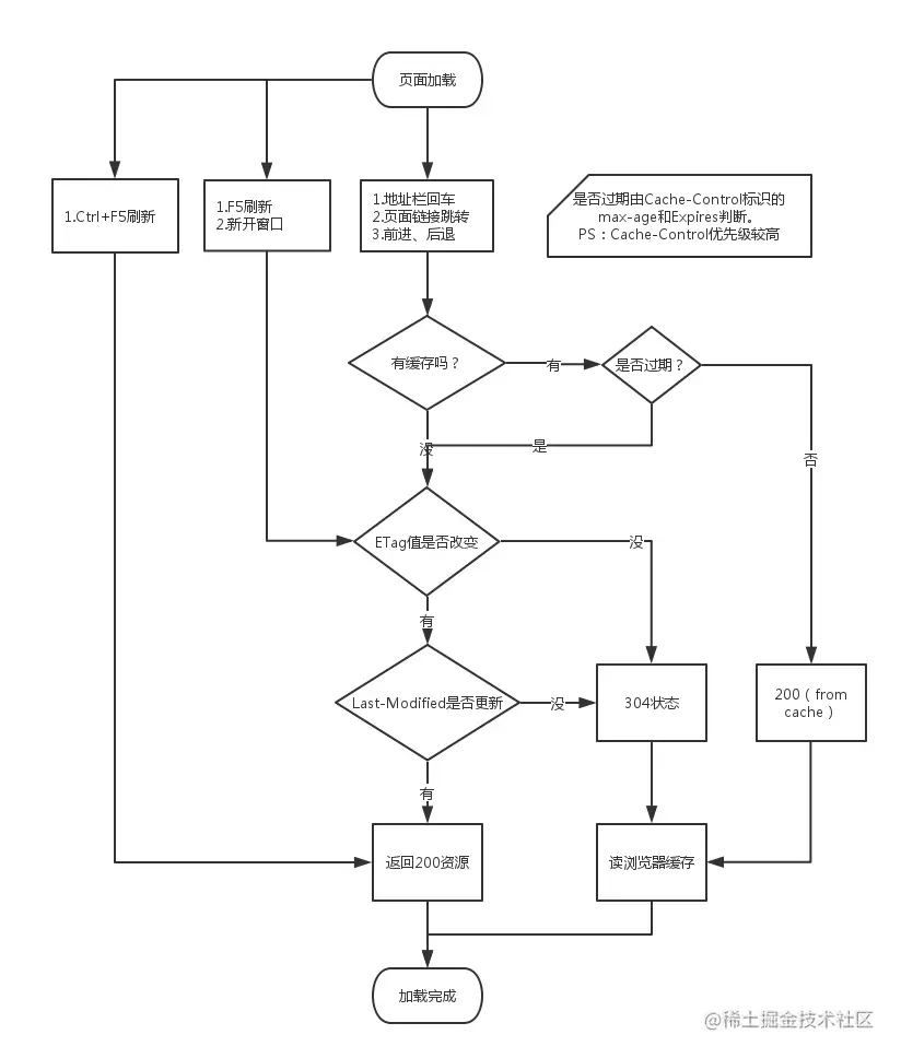 If-Modified-Since:当资源过期时(强缓存失效),发现资源具有Last-Modified声明,则再次向web服务器请求时带上头 If-Modified-Since,表示请求时间。web服务器收到请求后发现有头If-Modified-Since 则与被请求资源的最后修改时间进行比对。若最后修改时间较新,说明资源又被改动过,则响应整片资源内容(写在响应消息包体内),HTTP 200;若最后修改时间较旧,说明资源无新修改,则响应HTTP 304 (无需包体,节省浏览),告知浏览器继续使用所保存的cache。 -